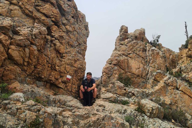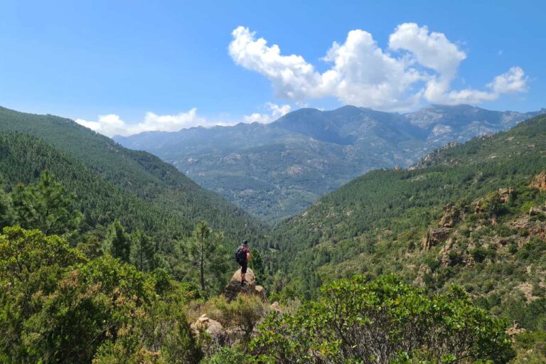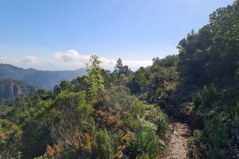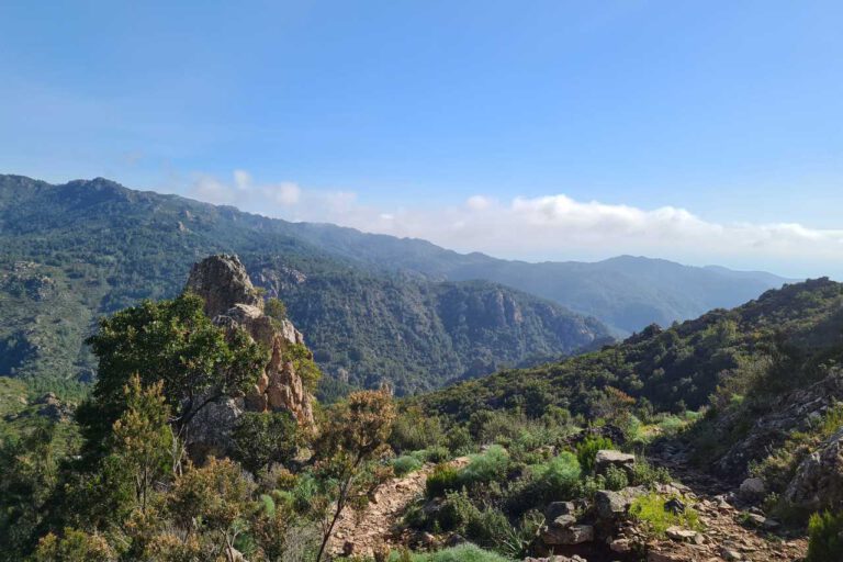 Wir haben das Feld von hinten aufgemischt und sind einen Teil der letzten Etappe von Conca Richtung Refuge de Paliri gewandert. Im Wohngebiet Radicale startete für uns die Tour hinauf zum Bocca d’Usciolu. Der Gipfel wird von den Einheimischen „La Porte“ genannt, denn ein markanter Durchgang öffnet die Tür in die weite Bergwelt.